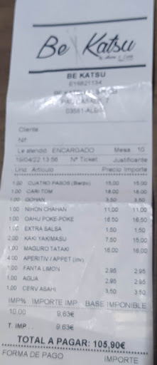Read moreHemos estado ayer comiendo con mi familia, ya que con mi hija vamos a todos los japos que puede haber y nos encanta la cocina japonesa y asiatica. Es por eso que a pesar de ver algunas criticas sobre el servicio y la camarera, no hicimos caso y fuimos a probar. ERROR. Pedimos una arroz Nihon Chahan, para mi hijo de 3 años que come hasta curry, pero debo decir que le faltaba mucho sabor....muchisimo. El maguro tataki, estaba muy hecho, no tenia mecerado ni cocinado en ponzu o citrico y ademas nos ha tocado la parte con mas nervio, por eso en lugar de deshacerse en la boca, parecia goma...FATAL. El Poke -Poke....bueno lo que mas se salva, pero hasta ahi; el curry vietnamita, pues ni hablar, no se sentia el lemongrass, ni el coriandro, ni el coco, ni la hoja de lima....era curcuma con verduras; he comido decenas de currys y esto le faltaba mucho trabajo, ademas todas las verduras que traia tenian un dejo dulce, zanahoria, berenjena, batata. muy mal logrado. Me ofrecieron arroz para el curry y lo pedi, sin saber que no venia en el precio del plato, un detalle, pero lo peor de todo es que como el tataki no tenia sabor a nada pedi un poco de Ponzu y por dos cucharadas me cobraron 1,50; como si estuvieran regalando el tataki. Al final de la comida comente al camarero y enseguida salio volando para adentro para decirle a la camarera jefa de eso; ahi es cuando me di cuenta que las criticas a la camarera jefa no eran mentira. Cero educacion y mucha soberbia, asi no se va muy lejos; solo la pueden salvar los turistas extranjeros que se sientan y comen lo que les pongan. Para tener un restaurante con esos precios hay que tener muchas cualidades que este lugar no tiene, no posee una decoracion acorde a un japo, Zen; no tiene personal cualificado en el servicio y la cocina debe mejorar mucho y estar mas atentos a los pequeńos detalles; la carta de vinos es de risa y si concluimos que pagas 100 euros 3 personas y me traen mantel de papel, pues lo coronamos. Un extra, cuando no fuimos del lugar, que se enteraron todos, porque la camarera se encargo de eso, las mesa de al lado que estaba comiendo curry nos dijo: " que vergüenza, teneis razon, este curry no sabe a nada" y pobres pidieron sal como pra darle mas sabor. Lamentable que gente que no tiene idea de que va la hosteleria y el servicio, tengan la posibilidad de regentear un lugar asi. Suerte a los que se animen, pero hay japoneses mil veces mejores, con mejor precio y mejor producto. Ahhhh, me olvidaba...las otras con salsa...