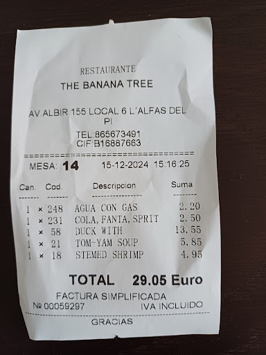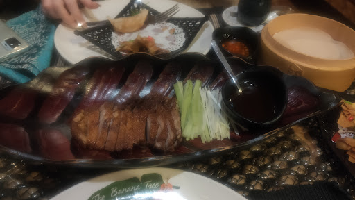 Lovely place with an eye for decoration. A giant banana tree, whose branches reach over the heads of costumer is the centre of attention. But only as soon as you have sat down and been handed the menu card. The Restaurant offers a vast variety of meals, each illustrated with detailed high quality pictures. Most contain meat, but there are curry which you can chose a vegetarian version of. Also some Menues for 2, 3 and 4 persons are available. As usual in asian Restaurants the plates come in good size and a starter is usually not necessary to make you feel well stuffed. Service is quite friendly aswell, although can appear a bit harsh at times. My recommandation: try the Peking duck, and...