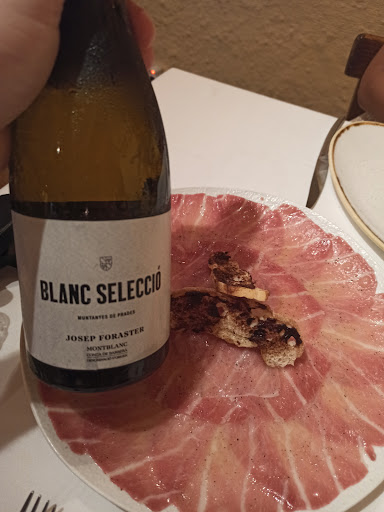 Read moreNuestra primera visita al restaurante. Nos lo habia recomendado un buen amigo. Nos han servido unas olivas y unas mini cremitas de calabazin y unos buñuelos de pulpo cortesia de la casa. Nos hemos pedido un primero y segundo para compartir y para finalizar un arroz seco de espardenyes todo para 2 personas. Hemos podido disfrutar de una ensalada de tomate, angula y calabacin que aconsejamos que proveis . Despues hemos pedido unos escamarlans que estaban muy buenos y hasta hay bien.... Porque la camarera nos ha dejado como se suele decir anonadados. Como por lo visto somos unos sibaritas a los que nos gusta comer y disfrutar hemos sido muy lentos y antes de acabar con los escamarlans-cigalas- ya estaba preparado el arroz y segun la camarera ya tenia que sacarlo y sino ... no se hacia cargo si se pasava.....en fin, guia Michelin....camarera poco acertada! Ya nos habia parecido fuera de lugar su actitud durante toda la comida, más propia - de restaurante xiringuito come rápido y vete pronto y mucho más. Entendemos que el arroz tenga un tiempo de cocción y respetamos el protocolo del restaurante para la elaboración pero otra cosa es la actitud de un empleada ante los clientes! Ni que decir, que el arroz no se ha resentido y estaba muy bueno.... Nos quedaremos con la responsabilidad y buen criterio de la Somelier que si ha sido una buena profesional y con los platos que nos ha preparado el Chef! Esperamos poder volver eso si, no pediremos arroz.... Es una pena porque el restaurante tiene su encanto dentro de lo que encontramos hoy en dia..... Eso si, preparad la cartera ... Sin postres, con un té y un café han sido 175€, solo el arroz de espardenyes( canyuts o Navajas pequeñitas ya eran 38 € por persona) con un vino de su esplendida carta. Lo dicho, creo que merece que se pueda degustar el trabajo del chef y saborear con más...