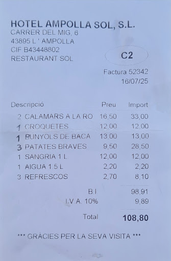 Ayer al mediodía, mi esposa y yo tuvimos el placer de disfrutar de una deliciosa comida en Restaurant SOL, L'Ampolla. Como visitantes habituales, sabíamos que estábamos a punto de deleitarnos con una experiencia culinaria memorable, ¡y no nos decepcionaron en absoluto!