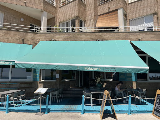 Read moreWhat a lovely new restaurant in this charming village! We stopped by for a nice full dinner as we were passing through the area on our Honeymoon. We were charmed by the warm midcentury modern meets seaside bistro décor, but lured inside by the delicious aromas coming from the grill, and the obvious enjoyment that the other diners were having. So glad we were able to get a nice table, just before the gorgeous view of the ocean from the windows turned to twilight. The appetizers were great; especially the calamari and croquettas. Tasty and fresh calamari, and not overcooked. The croquettes were nice and large, and overall the portions felt generous for the price. We decided to explore the menu by having a combination of tapas, and really enjoyed the board with beef entrecôte, fried padron peppers, potatoes and more. We shared a nice dessert platter of various cakes, fruit and ice cream...all were delightful! Had to take most of that home in a box, though! :) The hosts were gracious and warm, and service was quite good despite them being increasingly busy as we enjoyed our meal. With its diverse menu and very pleasant location, I would highly recommend giving Salazar's Beachfront Bar & Grill a...