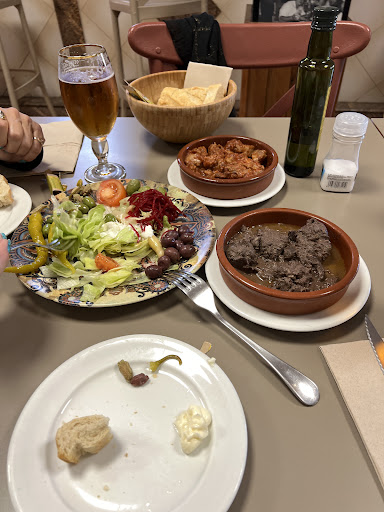 Today my daughter and I had lunch at this lovely little restaurant. We had the menu of the day including bread, a salad, pollo al horno and for desert a tarta de calabaza and a tarta de queso. All the food was homemade and absolutly delicious. The salad included a variety of olives, pickeled peppers and carrots, which were all incredibly tasty. The highlight was the desert. Just mouth watering. The service was exceptional, friendly and cheerful. A wonderful experience all round....