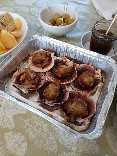Ja hem demanat menjar per emportar dues vegades i segur que repetirem. Tenen menjar preparat i també paelles i fideuàs que pots encarregar. De fet si els truques quan falta poc per anar-ho a buscar, et tiren l'arròs i així te'l endús a punt per ser menjat. La primera vegada vam provar la paella de marisc que era bona, uns calamars a la romana que ens van encantar i unes zamburiñas que no estaven malament. La segona va ser una fideuà que ens va semblar excel•lent, amb una bona proporció de peix, gambetes, cloïsses i calamars, i un all i oli fantàstic per acompanyar. El punt de cocció i el gust...