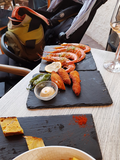 Really too bad we couldn't eat here the day before, they were fully booked for the first round. So we booked for the next evening. The dishes are great ! Tasty and good as tapas should be. The gamba's were so good. We got 5 big ones. We also ordered patatas bravas, chicken sticks, fried potatoes, an appetizer excisting out of bread olives, Spanish sousage and cheese, beef slices and fries squid in batter. All in all verry good. The portions are fair, I mean it is tapas. Price quality is good. The drinks are not to expensive compared to the rest of the boulevard. They made a dessert for our doughter on our request. They had that on their menu. The service is considered and nice. We had a really great and enjoyable evening. After the bill, they treated us with a drink from the house. If you like tapas, this is the place. They also have a sweet dog chilling inside on her mat. Hey buddy, you come here to pet me, sure go ahead. I love it. Keep up the quality and ambiance, awesome...