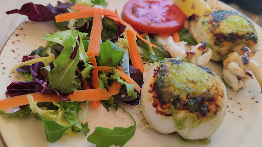 Després de més de una hora d’espera per fi ens vam entaular. Després de demanar ens van portar uns calamars a la romana tal com havíem demanat, però que després de servir-los ens van comunicar que no eren els nostres. No hi hauria hagut cap problema si no fos que la meva filla ja havia xarrupat la llimona. La mestressa li va treure (des del punt de vista de la meva filla, arrencar) la llimona mossegada de les mans, la va entaforar al plat dels calamars i se la va endur a una altra taula i vam quedar estupefactes tots plegats. No sé si pel fet de treure-li de les mans, pel fet que de ben segur que havia vist que estava mossegada, doncs li va treure just quan ella se la treia de la boca, o de veure com se l’enduia cap a una altra taula com el qui no vol la cosa.