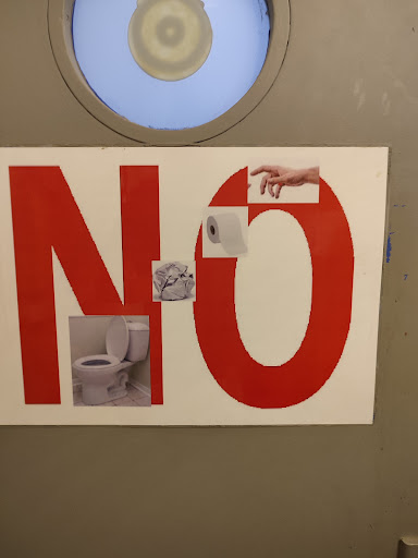 A quirky note: a poster in the restroom quite humorously highlighted that toilet paper should not be discarded in the toilet.