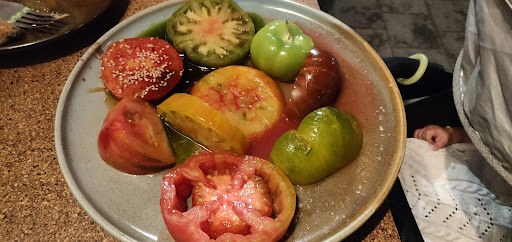 Platos sencillos sin ambición de buscar cosas rebuscadísimas, pero todos ellos elaborados con mucho mimo y un producto fresco de primerísima calidad. Como mejor ejemplo las verduras de su propia huerta, hacía años que no comíamos unos tomates con ese sabor, además con creo recordar que 21 variedades diferentes!