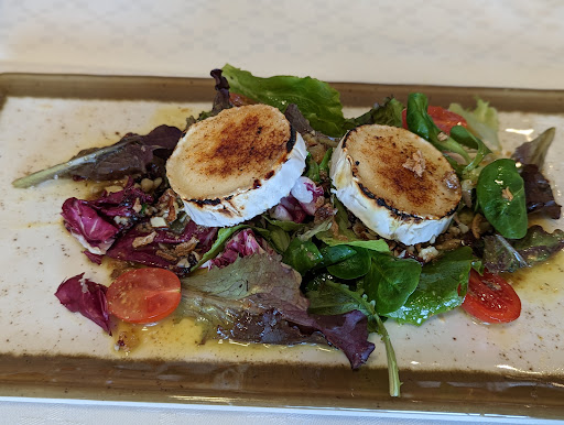 The olives werw delicious, the wine de la casa, a little sweet, it was succulent, i recommend it cold. I was happy with the starters (ensalada de cabra, a little special as the cheese was rolled in a zucchini slice and the arros caldoso mar i muntana)