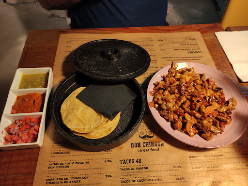 Pequeno restaurante muy acogedor escondido en el Hospitalet de Llobregat. Los platos te llevan al Mexico, llenos de sabor y colores. Todo lo que hemos probado nos ha encantado: hemos catado los nachos (con toppings muy abundantes) y tacos variados. Personalmente me he enamorado de los de cochinilla y mi novio de los de ternera con queso fundidos, la verdad estaban todas muy ricas! Tambien hay opción vegetariana con verduras asadas ( de 10!) Pero ojo a la hora de pedir porque las raciones están muy contundentes, estoy con muchas ganas de probar más platos de la carta: tengo unos platos apuntados para la próxima vez! Un sitio con encanto, decorado con mucho gusto. También disponen de salsas picantes para acompañar cualquier plato. Lo que destaca es el servicio, nos hemos sentido muy mimados, como en casa con el servicio muy atento, rápido y personalizado. Nos han servido unos ingredientes aparte, han respetado todos los cambios que hemos pedido, la verdad espectacular. He tenido un día muy duro hoy, el DonChingon me ha relajado y permitido de olvidarlo todo por un momento. Un restaurante con comida de calidad y el servicio a la antigua, con calidad y calidez humana. Volveremos mil veces! Muchísimas gracias la verdad! Calidad precio excelente. He ido a otros restaurantes mexicanos en Barcelona y no hay comparación! Ah y los chupitos ofrecidos al final de crema de taquilla de fresa/mango una delicia! El sitio es pequeño, recomiendo reservar con antelación! Siempre está lleno y no...
