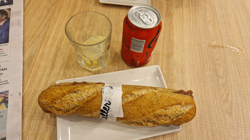Hemos venido a desayunar por primera vez aquí. Yo alguna vez me cogi algún café para llevar y alguna pasta para la merienda de mi hijo pero nunca nos sentamos. Pedimos dos zumos de naranja naturales, un café con leche de avena, un bocadillo de atún y un bikini y como nos apetecía algo dulce una berlina rellena de chocolate. Los zumos estaban riquísimos, las naranjas estaban frías. El café,bueno, los hay mucho mejores la verdad, la calidad del café no es la mejor y la leche de avena de vivesoy no me gusta,pero bueno obviando eso todo bien. Las dos chicas que había hoy domingo 10/09 Súper amables y atentas. Yo pedí un bocadillo pensando que era de atún y resulta que era de jamón y queso, el típico vegetal. Le dije que si porfavor me lo podría dar de atún pero solo le quedaba de jamón y de pollo( confundí el pollo con el atún) y ella muy amablemente me dijo que haría uno nuevo ahora mismo. Me pareció todo un detalle ya que iban corriendo todo el rato debido al alto nivel de trabajo que tenían. Todo esto por 13 euros lo veo súper razonable, teniendo en cuenta que el zumo natural de por sí es caro ya. Volveremos fijo, 100%...