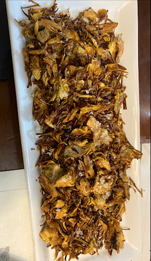 the chicken was devine as was the patatas y heuvos. the aubergines were very crispy but still delicious.