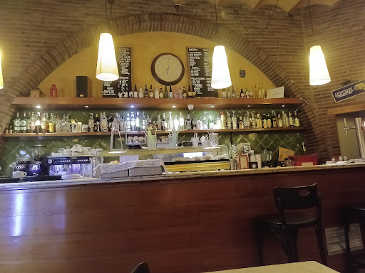 Read moreAyer cene ahí. Llevo toda la noche vomitando y pegado a la taza. Yo comí una hamburguesa de queso de cabra con cebolla. La cebolla estaba quemada, muy mal sabor, el pan también, no tengo muy claro si la carne estaba en buen estado. Aunque el camarero fue muy agradable nos atendió con simpatía y educación. No quita que la comida era cutre. Y carísima. 4,50 por unas bravas congeladas. El alioli de bote y la salsa brava está dulce! Luego otra cosa. Las patatas son sin gluten, pero la mayonesa y la mostaza no! Cuidado con eso porque no te lo avisan! Los pinchos son 2 brochetas, no una tapa de pinchos. Estaban crudos además. Las pizzas son un despropósito. Pequeñas y con poca sustancia.