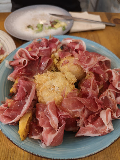 Read moreComo es habitual y para no perder la costumbre, el viernes salimos a cenar, hace unos días habíamos leído que el barrio tenía novedades, Malkoa una charcutería con degustación cerquita de casa, así que llamamos para asegurarnos el tiro. Al llegar vimos que las mesas estaban llenas y aún teniendo reserva, tuvimos que esperar, de todas formas se disculparon por la espera y enseguida que quedo una mesa libre nos la prepararon (se hubieran agradecido unas olivitas con la espera jajjaa). El trato excelente, las recomendaciones también, bravas (si quieres conocer un sitio debes conocer la salsa brava que preparan), cecina con foie, salteado de setas con gorgonzola, croquetas (otro clásico para ver el nivel) y coulant de chocolate. (ANOTACIÓN: La croqueta de chorizo brutal!). Producto manipulado de forma sencilla pero efectiva, sabor en el plato y buen ritmo de cocina, si hay que poner algún pero... las bravas salieron en último lugar. De todas formas experiencia a repetir, buen local, ambiente más que agradable y los pequeños detalles los compensan de sobras con...