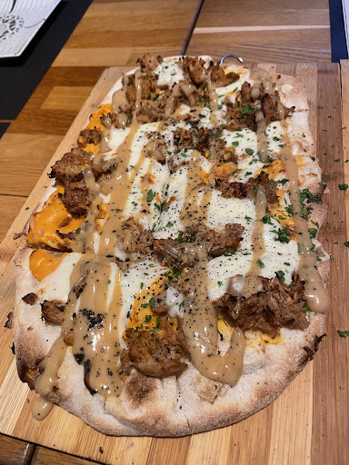 En varias ocasiones ya he visitado el mug para comer al mediodia pero me faltaba probar sus pizzas. Por motivos de mi cumpleaños decidí ir con la familia a celebrarlo y la verdad que la experiencia como en otras ocasiones ha sido muy buena. Decidimos probar dos entrantes ,la burrata,tomates,aceite de albahaca y olivas kalamata y un bikini con porchetta y cheddar...todo estaba muy bueno. Después para compartir elegimos dos pinsas, una pinsa rossa con jamón de parma, stracciatella, rúcula y cherry y la otra fue una pinsa barbacoa..ambas estaban muy buenas pero si me dan a elegir me quedo con la pinsa rossa. Para terminar pedimos tiramisú, tarta de queso y helado artesanal de Sandro Dessi. La atención de todos los que trabajan en mug es de 10, servicio muy rápido y muy atentos de que no nos faltara de nada. Para los que quieran ir recomiendo reservar. La relación calidad-precio me parece genial. La verdad ha sido una muy buena experiencia y de bien seguro que para otra ocasión repetiremos para...