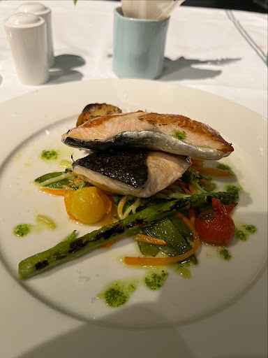 Salmon: The salmon was good, not great. It came with a mix of veggies like cherry tomatoes and a few asparagus in oil.