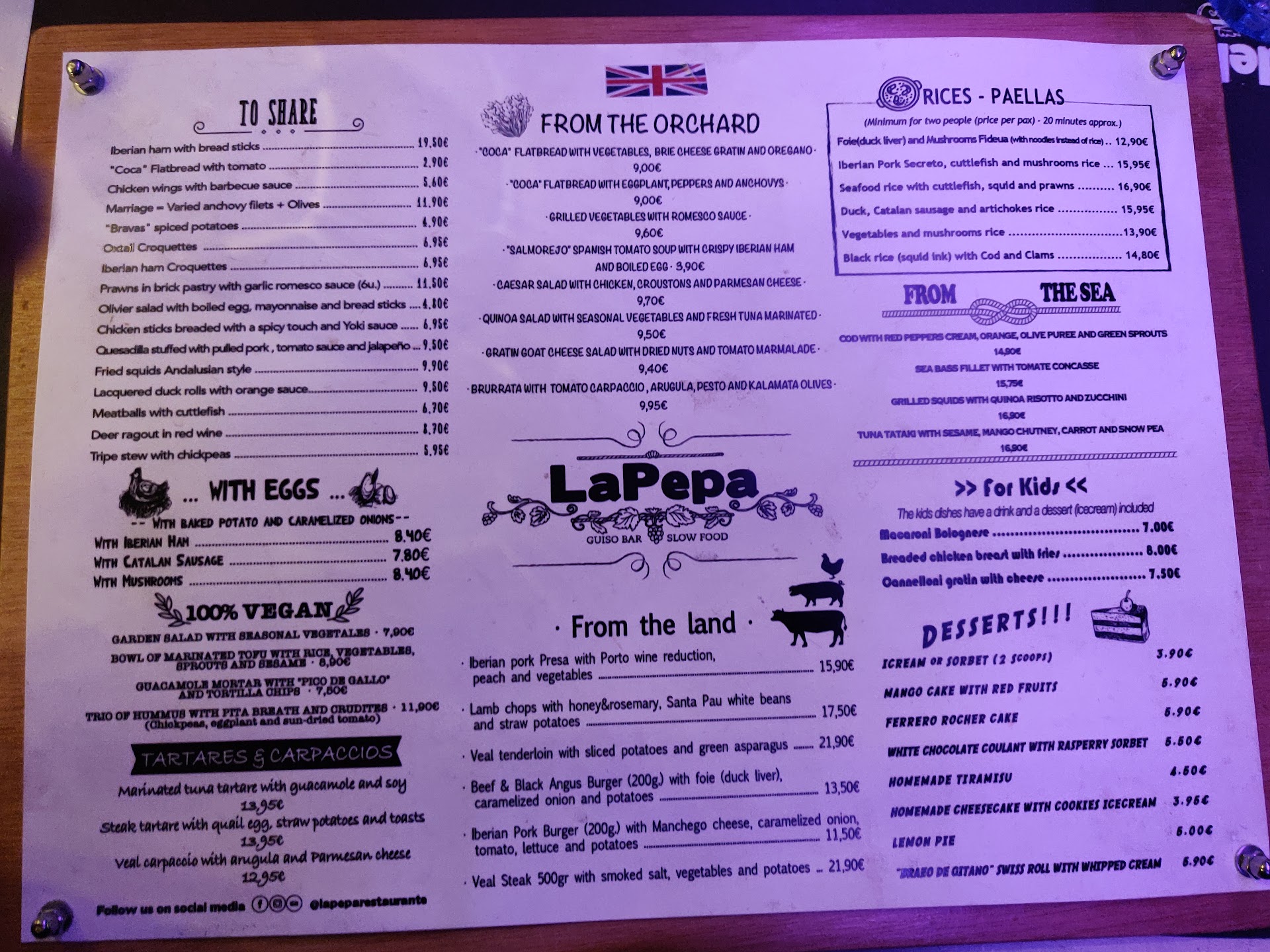 BEWARE: Every single entree item on the menu has hidden price. It says minimum 2 person's and also multiplies the price by the number of people eating. So, the prices are a minimum of 2X what it actually says. This was not clarified before ordering and they doubled the price on the bill (20 Euros on menu, 40 Euros...