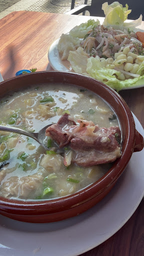 Read moreSi no fuera porque mi novia es peruana y conozco la verdadera comida peruana, habría pensado que esta experiencia refleja su gastronomía, pero no fue así. Desde que llegué, el trato fue frío y poco acogedor. Me miraban con desdén y tuve que insistir varias veces para que me explicaran qué llevaba el caldo de mote. Al final, apenas me dijeron que tenía carne y panza, pero no mencionaron que le ponían menta, lo cual no es tradicional. Además, la carne estaba cruda, roja por dentro, y fue imposible comerla.