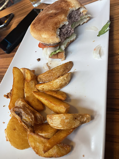 Read moreQuan ens van dir que el menú hamburguesa valia 18,95€ sense Postre, el vam trobar una mica car. Però ens vam imaginar que l’hamburguesa seria gran i hi hauria moltes patates. Quina va ser la nostra decepció, quan vam veure l’hamburguesa que no devia pesar més de 100-120 gr, amb ceba, tomàquet i enciam (vam demanar sense formatge) i hi havia poques patates. A la foto ja li havia fet dues mossegades però no havia menjat cap patata. Per un menú de 9,95 estaria molt bé. Per 12 o 14€ acceptable. Però per 18,95€… caríssim. El menú és: hamburguesa+patates+beguda. Ni cafè ni postre. Sí que ens van portar unes olives per picar. Tot i que el local estava buit, van tardar força estona en portar-nos el menjar. Per altra banda: fan entrepans, però no surten a carta i la cambrera no sap el preu exacte de cada entrepà. Suposo que segons com bufa el vent et foten més o menys cleca. Ens van cobrar 6€ per un entrepà de bacon i formatge. I la cuina…. Només cal veure la foto. La decoració del local és molt xula. Per això vam pensar que el menjar estaria a la mateixa...