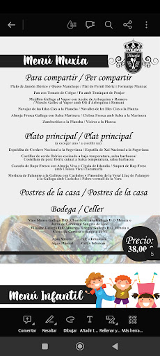 Read moreRealmente hay que felicitar a quien hizo el diseño del menú para grupos, ya que al leerlo te sientas en la mesa con altas expectativas para la cena. Menú gallego 33€ Para empezar, el vino tinto fue peleón (por decirlo finamente) aún que estaba bastante frío pocos se atrevieron a beberlo, al rato nos pusieron otro que ya si, se dejaba beber,