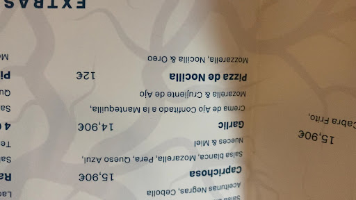 Read moreDimos con el sitio por casualidad y nos sorprendió! Es más, no quisimos irnos de allí sin repetir. Las pizzas brutales, el primer dia pedimos la "caprichosa" de pera con nueces (buenisima) y la barquilla de patatas, que hasta unas simples patatas fritas resultaron increíbles ya que las salsas eran caseras y estaban perfectamente fritas y espaciadas. El segundo día repetimos con las patatas de primero y pedimos pizza de ragu de ternera al vino tinto y 4 quesos. Buenísimas. El postre de chocolate con brownie estaba riquísimo,con un toque de sabor a baileys...🤤 Y el personal muy atentos, educados, cercanos... el chef sale a preguntar que tal les ha parecido la comida y se le nota la preocupación por la satisfacción de sus clientes. Todo de 10! Precio muy económico por la calidad del servicio. Volveremos, nos quedamos con ganas...