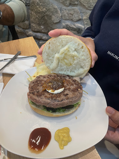 Éramos cuatro: pedimos dos hamburguesas con queso de cabra, pero sinceramente la cantidad de queso era muy escasa en comparación con el tamaño de la hamburguesa. Con un rulo de cabra en condiciones ganaría muchísimo y no creo que fuese desorbitado para el precio que tiene.