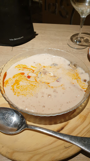 En primer lugar no saben aceptar una crítica constructiva, siempre que me pregunta que tal he comido, educadamente y con buenas palabras sugiero alguna mejora siempre que haya algo que sugerir. En primer lugar en la elección del vino (que no soy muy entendido) le pido un Ramón Bilbao edición limitada garnacha de 2019, me decanto por ese vino porque la edición limitado crianza de 2018 me gusta, al elegirlo el "encargado" me pone cara de (que mierda de vino vas a pedir) y me sugiere uno de la casa que dobla el precio del que he pedido, aún así me decanto por la bodega que conozco. Pasamos a pedir 3 pan bao de buey con langostinos, un wok de vaca vieja, un bacalao a la brasa con mojo rojo y un solomillo de vaca. El pan bao estaba malísimo no sabía a buey ni nada parecido(un relleno gelatino,soy agudo), ni siquiera el langostino tenía sabor, el pan bao tan mojado que el papel que tenía como sujeción para degustarlo,estaba inpregnado en el pan( como quitarle el papel de una magdalena). Pasamos al wok de vaca vieja, con buen sabor, un poco escaso de carne pero estaba muy bueno y la verdura en su punto aunq valiese 22 €, el solomillo en su punto y de tamaño considerable ya que son 32 €, pero el chiste viene cuando trae el bacalao a la brasa con salsa de mojo rojo. La cola de bacalao de menos de 1cm de altura y como unos 9cm aprox de largo, no sabia a brasas ni a bacalao, mal desalado ya que estaba muy salado, solo sabia a mojo con dos trozos de patata cocidas y como medio plato de lechuga sin aliñar 22 €, como dijo uno de los comensales (ese bacalao lo uso para hacer unas patatas con bacalao) "ridículo". Una vez terminamos de comer nos vienen a preguntar que tal hemos comido " el encargado" (ya que el camarero fue muy agradable y acepto nuestras sugerencias), y le volvemos a comentar que tenemos nuestras sugerencias ya que hemos visto alguna que otra cosa que se podría mejorar, como el bacalao que era una ración era muy pequeña y que era la cola, que podría servirse un poco de lomo del bacalao (por no decirle en la cara que era ridícula y que solo había mojo) y no se había cuidado la guarnición"22€", antes de terminar el comentario nos vuelve la cara y deja en el aire mientras atendía a otra mesa, que los platos tienen entre 170 y 180 gr de bacalao. PERDONA SI PREGUNTAS TEN MAS EDUCACIÓN Y ESPERA HA RECIBIR NUESTRAS SUGERENCIAS DE MEJORA, a continuación el camamero nos pregunta si queremos postre, a lo que nos negamos ya que viendo los platos no nos atrevemos. Solo decir, que le dije al camarero que no somos de poner criticas por internet que suelo dar mi opinión en la mesa, pero viendo la falta de educación y la necedad del "encargado" hoy si me voy a tomar la libertad de expresar mi opinión, decir, que un poco más y nos cobran por el aire que respiramos, un saludo y espero que a los próximos comensales les ayude mi experiencia gastronómica. PD- LO MEJOR DE LA COMIDA EL VINO Y EL...
