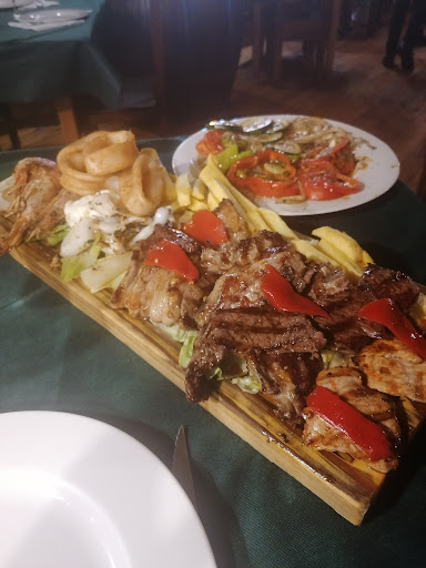 Encontramos este restaurante por error, de hecho en Google, preguntando por restaurantes en La Bañeza y había una reseña comentado lo buenísimo de su cocido maragato (luego descubrimos que nunca hacen ese plato, pero eso es otra historia). La entrada engaña, parece un pequeño restaurante, pero al entrar te espera un pasillo que desciende a modo de galería de un túnel de castillo medieval hasta lo que ese la planta baja del restaurante (con barra). Tiene un segundo piso (con barra) en el que fuimos aposentados (lo fuimos dado la ambientación). El local parece una estancia de un castillo con barandillas y vigas vistas de madera, con una armadura, barriles, etc. Sorprendete y acogedor a la vez. A la lectura de la carta parece que las tablas (de carne, de pescado y mixtas) destacan en ella aunque hay muchas alternativas variadas si ese tipo de comida no te va. En este caso optamos por la tabla pareja (éramos dos, claro) y una parrillada de verduras que pensamos que acompañaría bien a la tabla. La tabla estaba muy surtida para dos (tabla mixta) con dos langostinos grandes, anillas de pota, trozos de sepia, un par de costillas de cordero, lomo adobado, unos trozo de (creo) picanha, etc. Todo ello sobre una cama de lechuga iceberg, una islita de mayonesa y patatas fritas caseras (lamentablemente no estaban crujientes y estaban blandengues por dentro). La parrillada tenía, entre otras cosas, calabacín, cebolla, pimiento rojo, pimiento verde y tomate. No era escasa pero, a mi entender, 16€ es un poco caro para ese plato. Va regado un ajilis-mojilis bien equilibrado y en el que no vas a resistir mojar el pan casero (que te cobran por 2,50€) con el que te acompañan la comida. Postre mousse de chocolate y mousse de limón (bien) y un café. Precio final para dos...