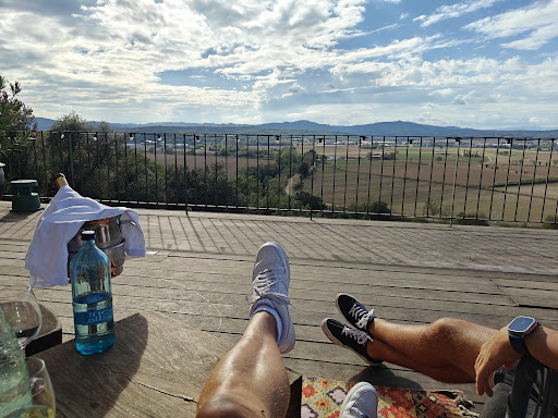 Our first waiter Diani from Colombia super nice, prof and smiling and fast. Next waiters all smiling and nice, younger and less prof. 1 our of 2 water was forgotten, Coke was forgotten - red wine for maincourse came before starter. White white for starter we again had to ask for after having already been served our starters. The meat hamburger really not good and meat not really nice and to plain/normal for 21 euro. The spareribs for 24 euro were super. The salads as starters were all 3 good. Inside the noise was enormus when we arrived on time 15.30 and we were quickly and with a smile from Diani moved outside to the terrace. Food came fast - main course maybe too fast but was closing time also as our booking was at 15.30 without problems we could move to sofa area for coffee and a rest. Super spectacular views and good vibes and we will be back and...