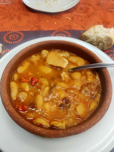 Optamos por el menú del día, y mi hijo y yo pedimos la sopa castellana como primer plato. Lamentablemente, los boles en los que la sirvieron estaban viejos y desportillados, lo cual generaba una preocupación inmediata por la higiene (usar vajilla con grietas o desportilladuras supone un riesgo significativo para la salud. Las bacterias pueden acumularse fácilmente en las grietas, lo que dificulta una limpieza adecuada y aumenta el riesgo de enfermedades transmitidas por los alimentos). La sopa en sí fue simplemente asquerosa: la consistencia era viscosa, con una yema de huevo flotando que estaba casi tan dura como una pelota de golf. He tomado muchas sopas castellanas a lo largo de los años, y esta fue la peor con diferencia. Daba la impresión de que la sopa llevaba días hecha y simplemente había sido recalentada. Cuando retiraron los boles casi llenos, el camarero/cocinero ni siquiera se inmutó, y mucho menos nos preguntó qué nos había parecido.