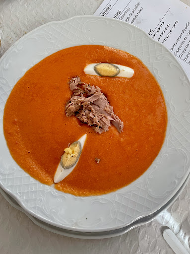 Read moreEl local a priori no está mal, el servicio es atento y el precio del menú excelente para ser un un sitio de paso. Las raciones son abundantes. Paella de arroz tipo brillante, seca e insípida, tenía bastantes cosas pero de verdad que no era agradable de comer, para colmo fría. el segundo no mejoró, el choco frito estaba en el límite del mal estado, solo por el olor no fui capaz de probarlo. El pisto casero y abundante estaba bueno pero frío, el churrasco de cerdo salió como 15 min después que el otro segundo, tieso como la mojama y con ajo por encima, que ya podían poner en el menú que es al ajillo y así se pide o no, pero por intolerancia no nos lo pudimos comer tampoco. Los postres son caseros y salvan por la mínima los bártulos. Jamás hago malas críticas me da mucho apuro, describo con detalle mi experiencia por si les sirve...