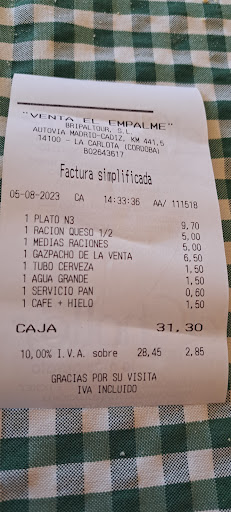 Read moreNo puedo entender cómo este local tiene comentarios positivos. No soy de poner reseñas en restaurantes, pero creo que en este caso se está engañando a los futuros clientes. Paramos a comer ayer domingo entre las 4 y las 5 y pedimos huevos con patatas, revuelto de setas, salmorejo, patatas bravas y otro plato que incluía croquetas. Los huevos y el revuelto, normal... nada del otro mundo, pero el salmorejo ni nos lo pudimos comer de lo malo que estaba. Las patatas bravas no eran patatas bravas, eran una especie de nuggets hechos de patata cocida con un rebozado o algo así. Las croquetas, peor incluso... las congeladas de bolsa se pueden comer, pero estas imposible: una masa mal descongelada con una textura horrorosa y el sabor, en fin... El camarero era correcto, latinoamericano, pero supongo que algo tan básico como un salmorejo, unas croquetas o unas bravas alguien de por aquí deberían tener para prepararlas a lo mejor no de 10, pero al menos que se pudieran comer. Un sitio...