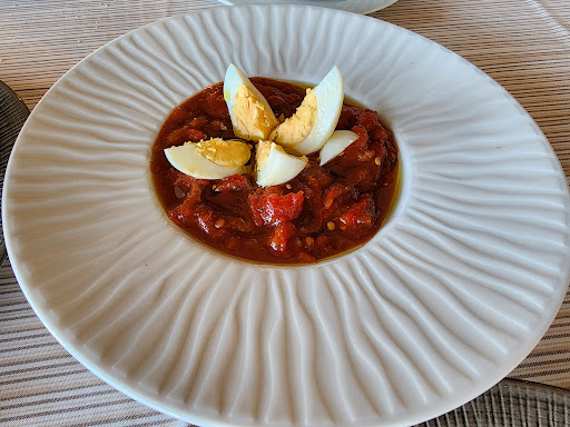 This is a really good spot for great food. We had to wait about 20min because we didn't have a reservation! Thankfully we were able to eat and the food was amazing. The start was a red pepper, tomato and olive oil sauce with white bread that was out of this world so we had to order another one. Then we ordered a really tasty Salmorejo cordobés soup (little bit spicy but good). Main plates were a Filete de atún a la plancha and a Dorada a la espalda that did not disappoint. Very good food overall and worth the...