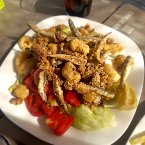 Read moreFuimos a este restaurante porque leímos buenos comentarios de él. Los bocadillos de los que más se hablaba tenían muy buena pinta y eran enormes, pero no los probamos. En nuestro caso pedimos unas Salchipapas y un fritura de pescado que estaban estupendas las dos cosas y con bastante cantidad. El postre también riquísimo y un trozo bastante grande (tarta de queso). Lo que no nos convenció fue el ambiente. Es un bar muy pequeñito que sólo tiene terraza y parece la típica tasca de pueblo con sus tertulianos diarios, allí hablando medio a voces e incluso estaba el típico borracho de pueblo que no había quien lo echara de allí y entró una muchacha a por unos bocadillos para llevar y a los tíos daba cosa de verlos como la miraban. La verdad que no se si repetiría por el ambiente del sitio, una lástima porque la comida...