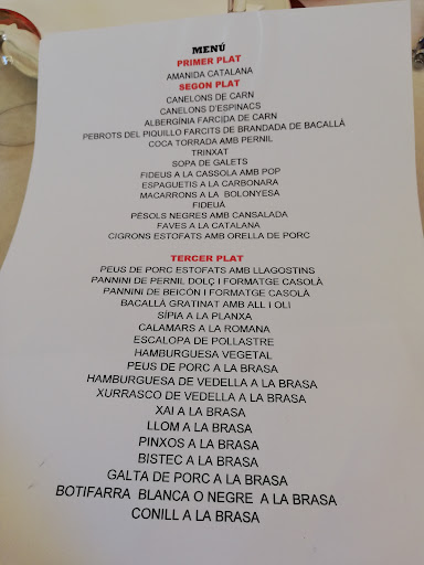 Read moreQueden pocs llocs com aquest. D'entrada un menu de 23 sona car, però si dic que hi entra una amanida catalana (GRAN), amb una llista d'uns 10 primers i segons i postres SENSE SUPLEMENTS amb una qualitat i quantitat que no pots sortir per la porta, després sona barat inclus. Cuina de casa, com la mestresa (un encant de dona) i el lloc (un menjador que sembla parat en els anys 80). Una cosa clàssica per la vall com aquest restaurant, dificil que en quedi algun com ells. PER...