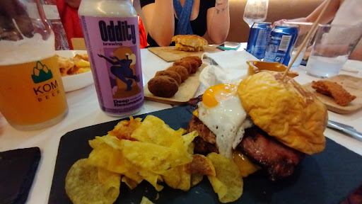 Read moreAuténtico bar de los de antes pero con cocina y opciones de cervezas de hoy en día... nos han tratado como amigos de toda la vida. Ha sido una gran experiència! Nos dejamos guiar por sus recomendaciones y pedimos la hamburguesa "Smash", pedimos también tortilla con "pulled pork" y las croquetas de "cocido" y "rabo de toro"... Brutal... no sé con qué podría quedarme. No probamos más platos pero estos son muy recomendables. Además, soy aficionado a las cervezas IPA y la carta de opciones es larguísima. Como punto a mejorar quizás es que las mesas del interior del bar son bancos y no tienen respaldo, se hace un poco incómodo cuando llevas un rato sentado. Volveremos al 100%,...