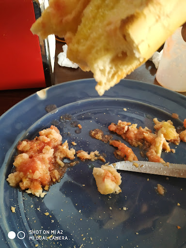 Read moreEl típico sitio de paso para tomar algo durante un viaje. Tiene zona de comedor y zona de barra y mesas tanto para menú como para carta. Te ponen tapa con la bebida, si la pides. La comida no está mal, en general....en nuestro caso, plato combinado de huevo y patatas y ración de ensalada mixta, a nuestro parecer muy cara para lo que llevaba: un espárrago, dos trozos de tomate, una pizca de atún, dos pizcas de maiz, otro tanto de cebolla, 2 aceitunas y lechuga muy escasa....6 euros. El pan de los montaditos era exageradamente grande en comparación con el contenido...en este caso, pechuga a la brasa, sin nada más dentro del pan, y chorizo a la brasa..Por 3,50 no esperes otra cosa. Pero lo que nos llamó la atención fué la ración de croquetas de cocido...lo acompañaron con Palitos de pan...algo que nos sorprendió negativamente...donde se pongan unas patatas fritas o unas hojas de lechuga....en fin... El servicio al cliente, normal. Pero la limpieza en los baños dejaba mucho que desear...en un sitio de paso tan concurrido deberían cuidarlo más. De todas formas, es algo que estamos viendo de manera habitual en muchos sitios...parece que el tema desinfección pospandemia ya se...