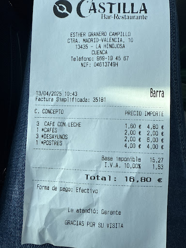 Read moreServicio rápido y eficiente. La comida está rica y es abundante y los precios son normales al igual que en cualquier sitio. Cobran 1€ por entrar al baño si nos consumes pero me parece una buena praxis ya que limpian el baño, pagan el agua y el papel higiénico y hay cada cliente que deja el baño que da asco así que entiendo que lo cobren si no consumes nada ya que si no, todo el mundo vendría únicamente a utilizar el...