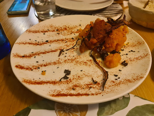 Read moreTe levantas un sábado con ganas de hacer 110 kilómetros por angostas carreteras para ir a comer a uno de los más bonitos y pequeños pueblos de Madrid, La Hiruela, ejemplo de arquitectura llamada “negra” por estar compuesta de lajas de pizarra de ese color. Su paisaje y su arquitectura, por si misma, es justificante suficiente para llegar hasta allí. ||Para comer se había reservado mesa en el único restaurante que queda en el pueblo y que regenta Ignacio Merino quien, a la vez, es el propio alcalde de ese municipio de no más de 50 habitantes censados. Su restaurante CASA ALDABA… y bien podían poner una en cada mesa para poder llamar y ser atendido.||Al entrar te sorprende un pequeño y coqueto comedor, bien colocado en un espacio encajado entre lo que fue un antiguo pajar y grandes bloques de piedra de la zona. Ambienta una chimenea acristalada con un hogar encendido que da calidez y sosiego al comensal y al comedor, lástima que la chimenea se apagase a la media hora y nadie fuere capaz de volver a encenderla, por lo que se terminó la comida con los abrigos puestos y con frío. ||No están mal vestidas la meses, si no tenemos en cuenta los bajo platos que son como bandejas de cristal de microondas y no tienen función alguna pues no te van a cambiar el plato ni el cubierto en toda la comanda.||Pedimos una cerveza y la carta de vinos. Había un gran contraste, de la cerveza solo te ofrecen dos variedades; y la carta de vinos, extensa y densa para el sitio, ya te advierten que no todo lo que aparece en la ella lo tienen. Pues, si no lo tienes, quítalo. La carta de vinos está confeccionada a mano en un mamotreto de difícil manejo y, al pie de cada página, advierte que no se incluye en el precio el IVA. Bueno, está bien advertirlo, pero sería mejor que figurase el precio con el IVA incluido, al fin de cuentas uno va a comer y no a hacer números. ||La primera pifia llega con el descorche del vino, no, no pedimos un sommelier, no hace falta, pero si tratar el vino, el producto, como se merece. Se pidió un Pago de Cirsus Vendimia 2016 (crianza), que en el mercado está a unos 8 euros y en la carta estaba a unos 12, más IVA, claro. No está mal el precio de carta. Pero no se puede venir con el vino como si fuere un coctel en agitación y, una vez abierta la botella no ofrecerla a catar y dejarla en la mesa, una vez abierta, con el corcho puesto. La camarera no debía ser muy ducha en las artes del descorche. Pedimos tres copas que limpiamos nosotros con las servilletas, estaban salpicadas de gotas secas de agua. Que habíamos perdido toda esperanza con la camarera, a la que se le notaba muy mucho que no era su mundo la hostelería.||Te ofrecen una carta con menú a 25 euros por persona, bebida aparte, y los menús son “por persona”, que no vale eso de hacer trampa y un menú para dos. Éramos cuatro y optamos por tres entrantes para compartir y dos segundos para compartir dos a dos. ||El primer entrante fueron alcachofas en flor con olivada. Pero, ¿cómo es posible que siendo cuatro comensales se pongan tres alcachofas? Y, además, siendo ese producto, en origen, amargo y que hace amargar cualquier bebida que tomes con él, acompañarlo con una olivada también amarga; olivada que venía en un pequeño cuenco o cocha cerámica dentro del propio plato que contenía las alcachofas. Hombre, si ponéis cuatro y lo avisáis y cobráis un poco más, sería un buen detalle; excelente si no lo cobráis. Pero claro, sorteamos quién no comía alcachofa, aunque una mente caritativa las dividió y todos las probamos. Bien, solo bien, sobrando la olivada. Tampoco vinieron unos cubiertos con el plato para servirnos y tuvimos que emplear los propios de uno para servir a los restantes comensales. En fin, había confianza. ||El segundo, huevo a baja temperatura con boletus y hojaldre. Difícil de explicar lo que se nos sirvió: efectivamente había un huevo, más escalfado que hecho de otra forma, de yema amarillita clara que dejaba ver su procedencia del mercado, cuatro tozos del tallo de boletus de conserva, pues es impensable encontrar boletus frescos en estas fechas; tres trocitos de un hojaldre duro, que eran como los cuernitos de un pequeño croissant , y una verdura verde, que bien podrían ser tirabeques, pero no lo definimos con exactitud. Esto para cuatro. Y tampoco vinieron unos cubiertos con el plato para servirnos y vuelta a utilizar los propios para servir a los compañeros. El plato de sabor no estaba mal, pero muy vulgar en su presentación y en sus productos.||El tercero, caparrones guisados. Los caparrones son unas judías rojas muy de la zona de La Rioja, donde las preparan con parte del marrano de una forma excelente y también, en algunos sitios con verdura. A nosotros nos pusieron un cucharon en un plato con una especie de guiso, que más sabía a lentejas que a otra cosa, y unas diez o doce de estas judías, todo ello coronado con unas migas de morcilla colocadas encima, como una cucharada sopera, que no aportaba al plato nada. Pero lo peor vino al probar y ver que estaba frío, y no decimos templado, no, frío. En un sitio como ese, donde ya teníamos los abrigos puestos por el apagón de la chimenea, no se puede servir esa especie de guisote en un plato tan frío que hizo que la comanda se enfriase. Lo dices y no parece gustar mucho. Lo devuelven templado.||Por fin nos cambian platos y cubiertos. Y dos comensales se piden lomo de bacalao fresco con verduras, a los otros dos, el propietario y fuera de carta, nos ofrece chuletón de vaca vieja de la zona. Es de agradecer que no lo vendiera como buey. Veamos cómo fue.||El bacalao fresco pasable pero muy escaso, era medio lomo, con un poco de verduras salteadas, y un “puñado” de canónigos, que debieron pasar por allí y fueron agarrados al vuelo. Todo comestible, sin ser malo ni excelente.||La carne, para los otros dos comensales, se pidió “al punto”. Y si, lo reconozco, que pedir una carne