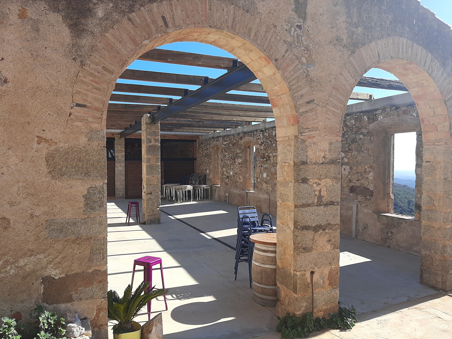 Read moreComimos aquí después de visitar el Castillo de Requesens, ya que esta lejos de todo y cuando sales de la visita es hora de comer, cuando haces la reserva de la visita al castillo puedes decir que comerás en la cantina, caso contrario lo más normal que no te accepten a comer, por que tienen espacio y comida limitados, si puedes tomar algún refrigerio sin reserva, nosotros reservamos pero la chica del Wassap donde haces la reserva se olvidó de avisar a la cantina y no teniamos mesa reservada, pero los que se encargan de la cantina nos pidieron disculpas y nos proporcionaron mesa, la comida muy buena, pimientos de piquillo rellenos de bacalao,croquetas caseras de pollo creo que sin sal,entrecot a la plancha y pollo con langostinos que realmente era pollo con un gambon, pero estaba muy bueno todo, postres geniales tiramisu y tarta de queso entre otros, vino,agua,café,pan, todo por 20€, 22€ si no visitas el castillo, el único pero es que en el salón donde se come hace un frío que pela y tienes que comer con chaqueta, tienen una terraza donde tomar algo con unas vistas...