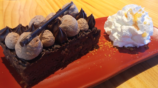 En el nostre cas vam escollir l'hamburguesa 100% angus, amb tomàquet, amanida i ceba caramelitzada. Anava acompanyada de patates fregides, naturals segons el que posa a la carta. L'hamburguesa era correcta, poc feta, però sense massa a destacar. El pa era cruixent i això li donava un punt a favor. De postre, dos de casolans: la crema catalana cremada i el pastís Sacher. L'elaboració d'ambdós era bona. El Sacher portava melmelada d'albercoc a dins, anava acompanyat de nata i sorra de galeta i , a sobre, decoracions de xocolata i trufa. Val la pena guardar un forat per tastar-los.