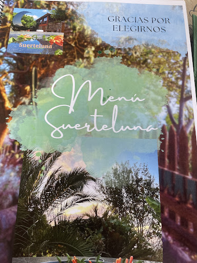 Casa Suerteluna is a rambling, quirky house, full of character, set amongst vines, with superb mountain and sea views. Giacomo and Mari are warm, friendly, genuine people who made every effort to ensure our comfort and enjoyment.||My birthday meal, cooked by Giacomo, was a nine-course wonder. ||We experienced most of the seasons during our week's stay and did not have much opportunity to enjoy the lovely grounds. However, there were sufficient spells of good weather to allow us to enjoy the spectacular scenery that this end of the island has.||A word of advice if you are hiring a car: don't do as I did and go for a cheap ( old and underpowered) model. The roads here are the steepest I have ever come across and merit a car...