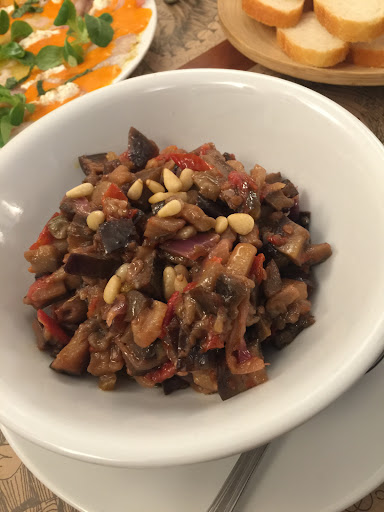For myself, it had to be the chef's own creation - sea bass fillet in a rich pistachio sauce. Divine - buttery, crunchy, rich yet light, and accompanied by potatoes. A matching white wine was a sumptous accompaniment.