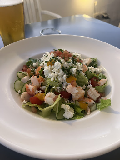 The watermelon feta & shrimp salad was tasty, but quite small. Having shrimps sliced in two and served this way was new for us, and didn’t come across well. Rather 3 or 4 full shrimps than 6/8 halves, feta pieces were also tiny. As a whole, the salad looked rather deflated and was small for a main course.