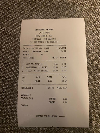 Read moreUnfortunately after my second wisit I am forced to re-evaluate my opinion. The first opinion was five stars and stated :"Great food at great value. Professional restaurant with a light atmosphere. The staff is very professional and friendly. A must in Corralejo!" the second wisit was a small disaster. The same dishes were done differently and much worse! The steak was overcooked, the traditional fish casserole was a disaster and waste of good fish. The tapas were half and half - squid carpacio was ok but the seafood salad was a surimi driven disaster. I think that the chef MUST be different on different days. But how is the customer supposed to know...