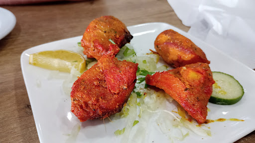 The staff were welcoming and polite, the service was excellent and the food....... wow !! We all agreed that this was the best meal of the holiday. Served complimentary poppadoms and pickles, husband had chicken puri and grandson had prawn puri as starters. I ordered chicken shaslik and garlic naan, hubby had the Tikka massala and mushroom rice and Arthur had never tried Indian food before so ordered a pizza. He soon changed his mind and the 3 of us shared the 2 main meals and sides and they were absolutely delicious and plenty to go round. The pizza was boxed and taken home. We cannot recommend the place enough - worth a wander away from the main town - you won't be...