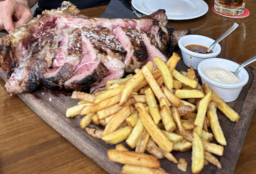 Read moreCame here based off a recommendation from the hotel we stayed at. It’s a small unassuming little restaurant which you could easily walk past. You have to step down off the street to get inside. There is a ramp for pushchairs etc. There were a couple of locals dining which I took as a good sign. The steak menu was small and I felt a little disappointed and settled for a sirloin steak. Others shared a shared steak platter. The staff were all super nice, drinks were served very chilled and the red wine was nice too. Starter was tasty but I was ready for the main event. As soon as my steak was brought out I was very happy, the sirloin cut was more like a fillet steak, nice and thick, zero fat to cut off and cooked to perfection. I eat a lot of steak and this is up there with the best I’ve had. For €25 I would eat this every night. You won’t find a steak near it in the UK at this price. Fries were good, garlic Mayo excellent and everyone enjoyed their meals immensely. The meat platter was huge with steak and sausage which I managed to try, this was also good and not just to make the plate look fuller. Excellent value and a very easy recommendation. The staff were attentive and genuinely interested that we enjoyed our food and the service. Would return every night if it...