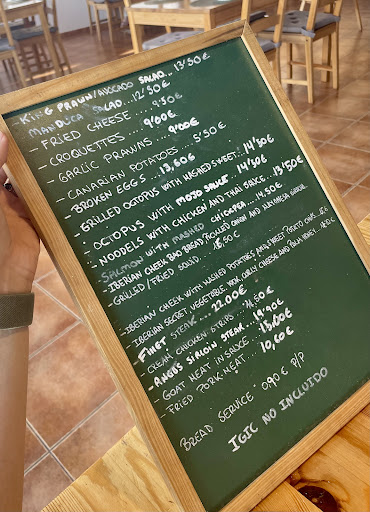 Great wine selection, cold beer and yummy octopus what else can a girl ask for, after a wonderful hike around mountain arenas. If you want pizza it isn't advertised anywhere (think secret menu) but looks absolutely delicious especially if you like cracker thin crust (another reason for only 3 stars). The Hamburger with a fried egg on top looks yummy too. The rest of the menu is typical canarian cuisine and they didn't have "Tapas" size plates "available" (which is why I gave them just 3 stars for that too) just full plates which are perfect enough to share with a few people (but limits your choices if you are on a budget) as for prices ...it is a bit pricey (another reason for 3 stars) but that is what you get...