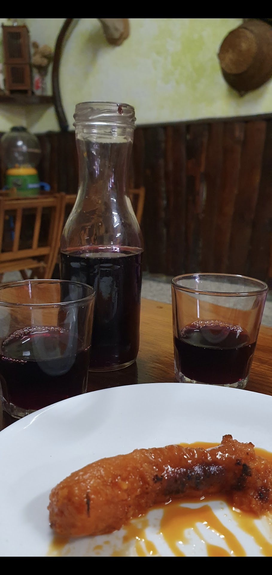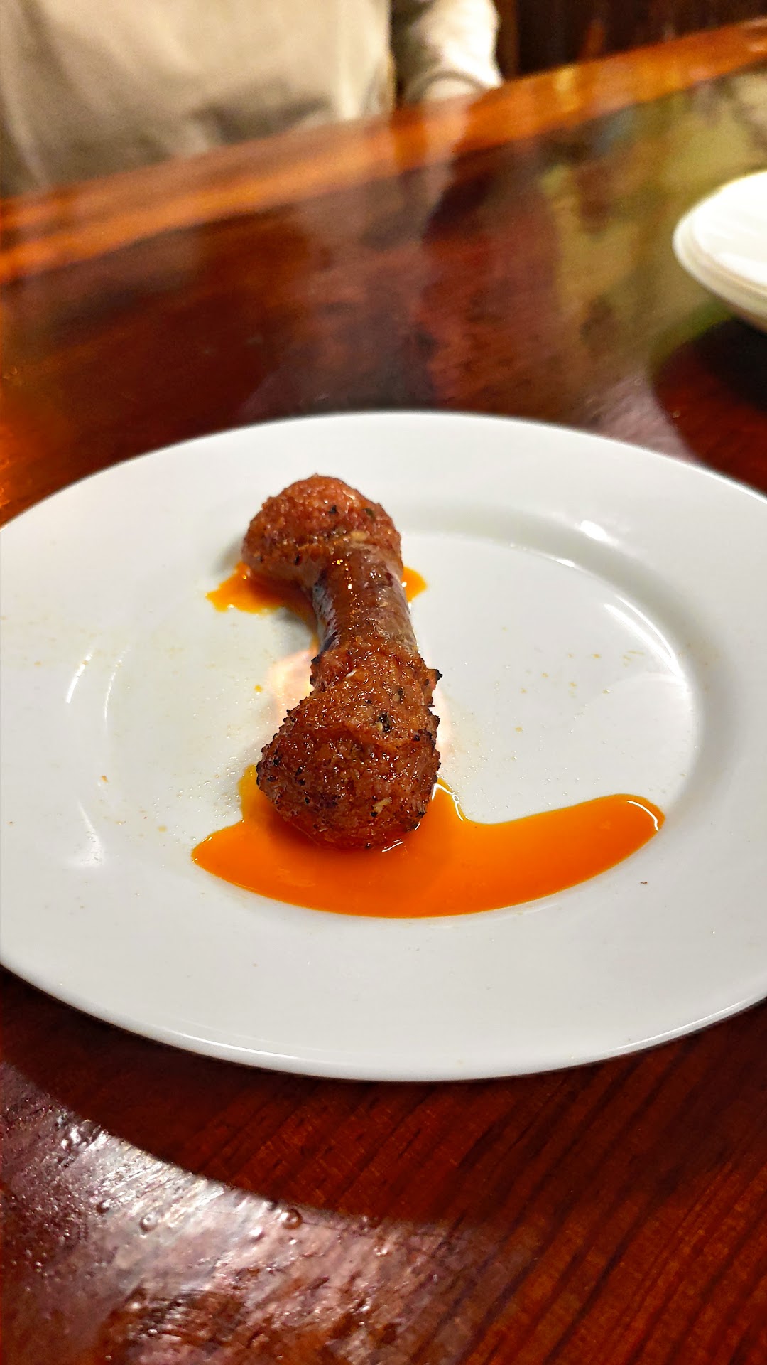 Cuando llegamos era algo tarde y consultamos si era viable almorzar, el señor que nos atendió muy amablemente nos dijo que eramos bienvenidas y nos acomodó. Nos surgieron algunas dudas sobre platos y nos explicó con detalle qué era cada cosa y sus ingredientes. Mientras decidiamos que pedir de comida, pedimos un vino de la casa que nos trajo acompañado de un chorizo al infierno que estaba bien rico.