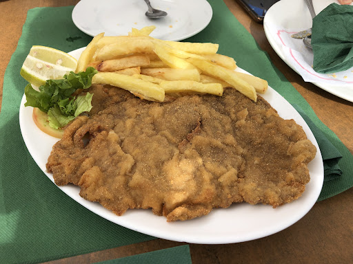 La comida muy buena también. Los calamares a la romana estaban exquisitos, muy buenas las croquetas, el queso blanco muy rico también. Mención aparte el rancho, otro clásico como el potaje de berros. Buenísimos ambos. El filo muy, muy, rico, otro plato "de toda la vida". Digno de resaltar el bacalao encebollado con papas arrugadas. Un deleite. También muy sabrosos los chocos a la plancha, el escalope de cerdo y la merluza empanada. No me quiero dejar nada pero todo lo que comimos estaba buenísimo.