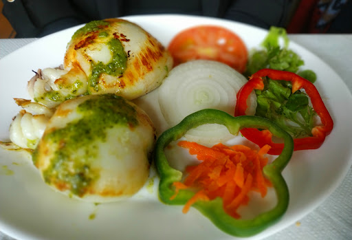 La comida muy buena también. Los calamares a la romana estaban exquisitos, muy buenas las croquetas, el queso blanco muy rico también. Mención aparte el rancho, otro clásico como el potaje de berros. Buenísimos ambos. El filo muy, muy, rico, otro plato "de toda la vida". Digno de resaltar el bacalao encebollado con papas arrugadas. Un deleite. También muy sabrosos los chocos a la plancha, el escalope de cerdo y la merluza empanada. No me quiero dejar nada pero todo lo que comimos estaba buenísimo.